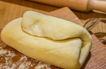 keturkampis gabalas. Gabalas padedamas ant lakšto vidurio, lakštas ant jo sulankstomas voko forma, užgnaibomi kraštai ir perlenkiamas pusiau. Tešlą kočėlu iškočiojama į juostą, kuri sulankstoma trigubai, tada iškočiojama skersai ir vėl sulankstoma. Taip sulankstyta tešla palaikoma 1- 11/2 h, kol pakyla. Vėl iškočiojama dar pakildinama 1/2 h, tada iškočiojama ir daromi įvairios formos kepiniai.